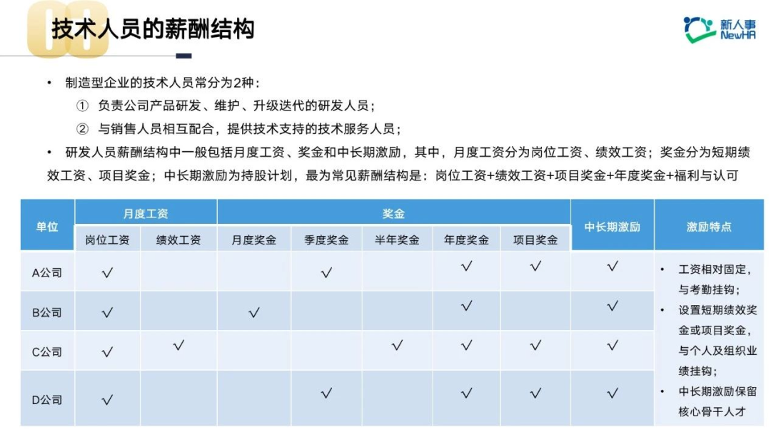 研发人员薪酬结构中一般包括月度工资、奖金和中长期激励。